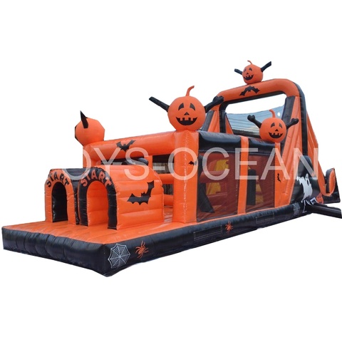 子供のイベントやパーティーに適したカスタム商用ハロウィーンインフレータブル障害物コースかぼちゃバウンススライド